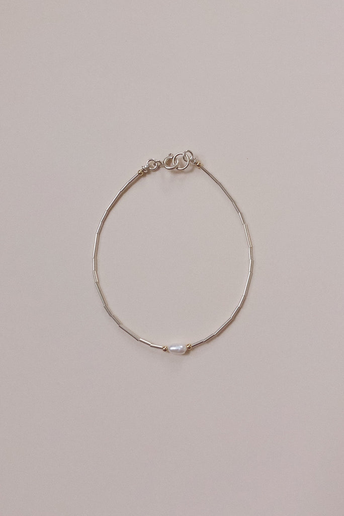 Petite pearl and sterling silver beaded bracelet with petite gold-fill accent beads. A modern heirloom piece, perfect for all occasions. Sterling silver + 14k gold-fill.